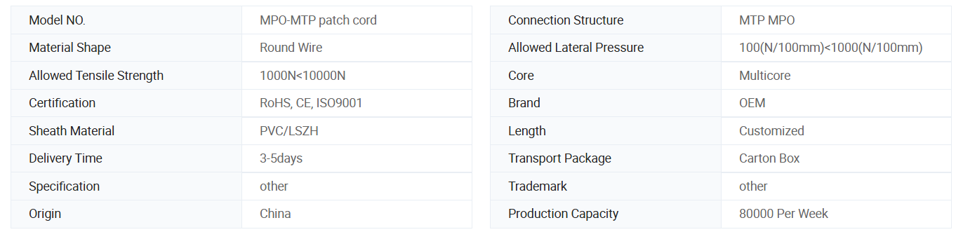 Flexible MPO/MTP 12 Fibers Fiber Optic Patch Cord -20C- 70C for Different Environments Images |