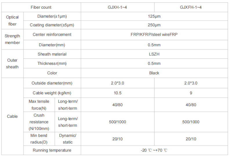 Fiber count : GJXH-1~4; GJXFH-1~4