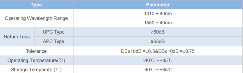 Return Loss : UPC Type ≥50dB;APC Type ≥65dB